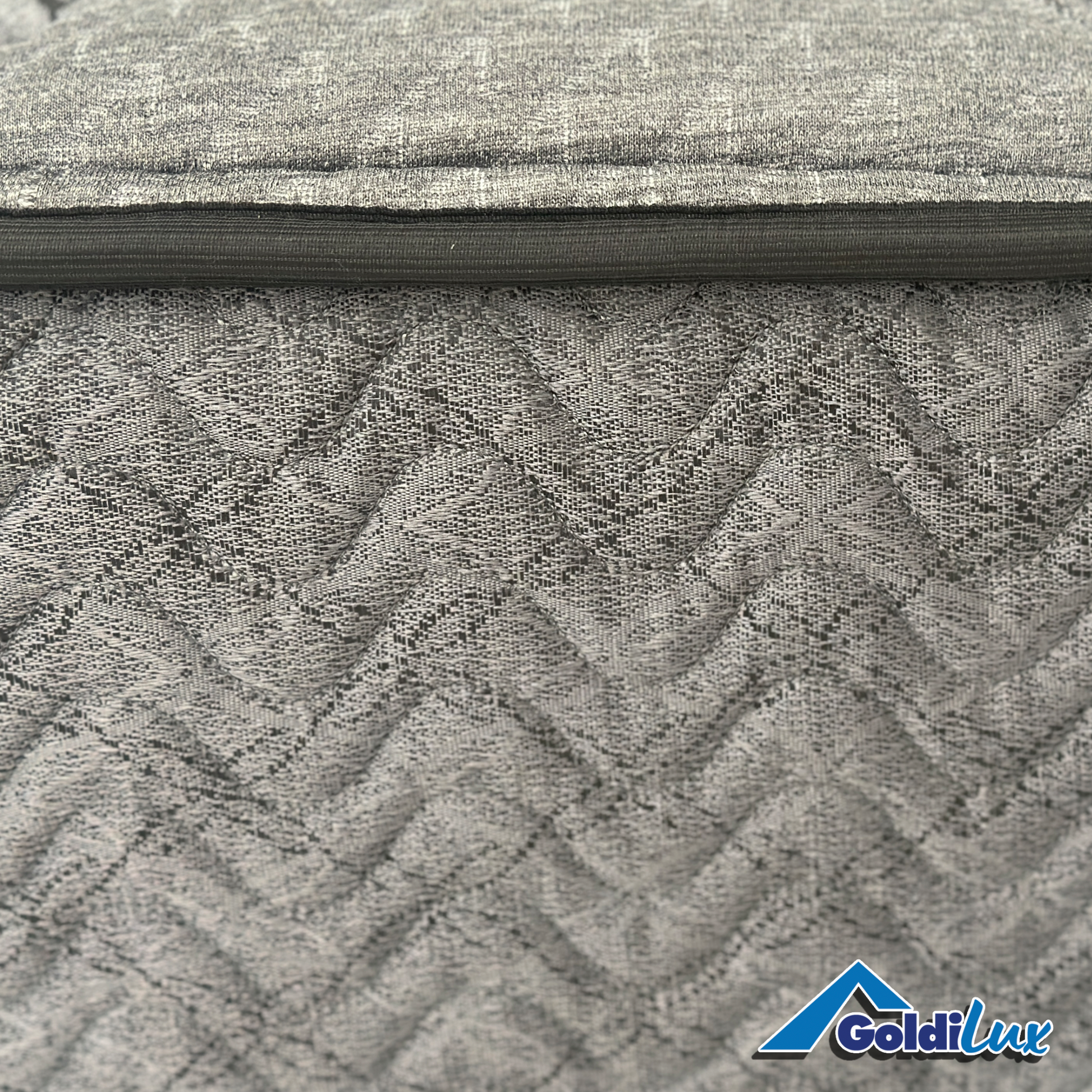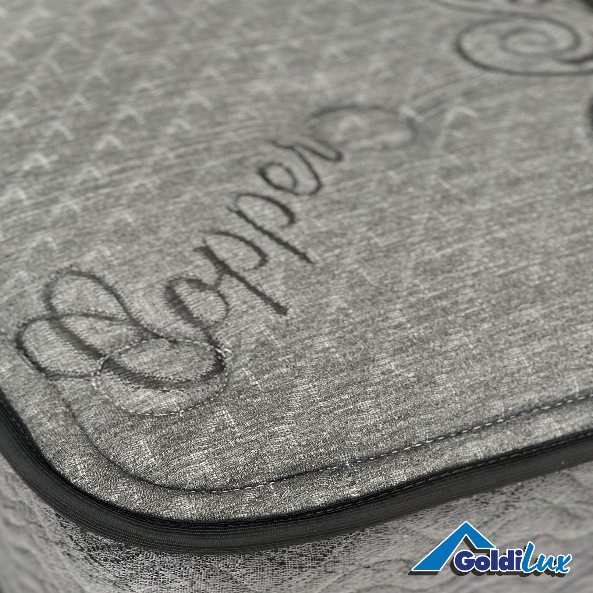 The GoldiLux features our Copper and Gel Infused foams with proprietary advanced supportive air technology, which includes billions of microscopic air capsules that promote airflow, enhance breathability, and increases support without compromising comfort. The foams are combined with a 789 Quantum Edge Wrapped Coil System (Queen Count) to provide increased edge support and increase the overall size of your sleeping surface. The individually wrapped coils contour to your body to reduce partner motion transfer disturbances and eliminate noise.